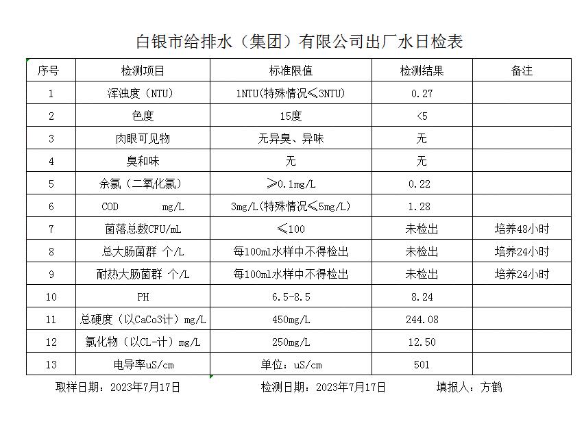 2023年7月17日水質(zhì)檢測報告