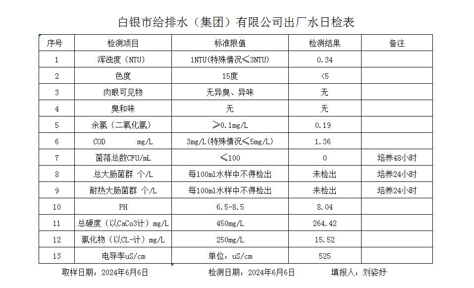 2024年6月6日水質檢測報告