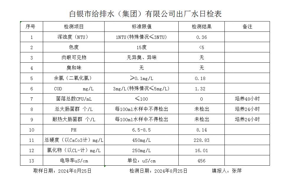 2024年8月25日水質(zhì)檢測報(bào)告
