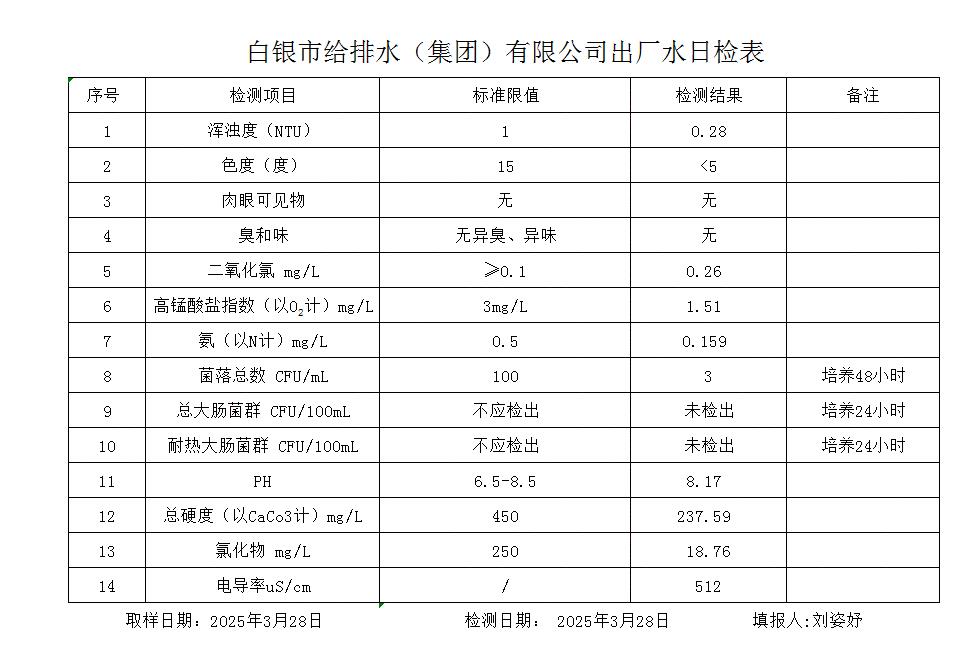 2025年3月28日水質(zhì)檢測(cè)報(bào)告